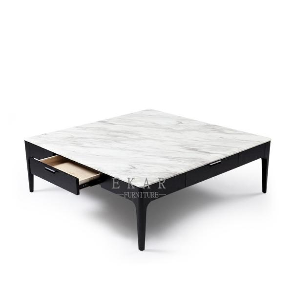 Square Ash Wood Frame White Marble Top Center Modern Coffee Table with Drawer Images |